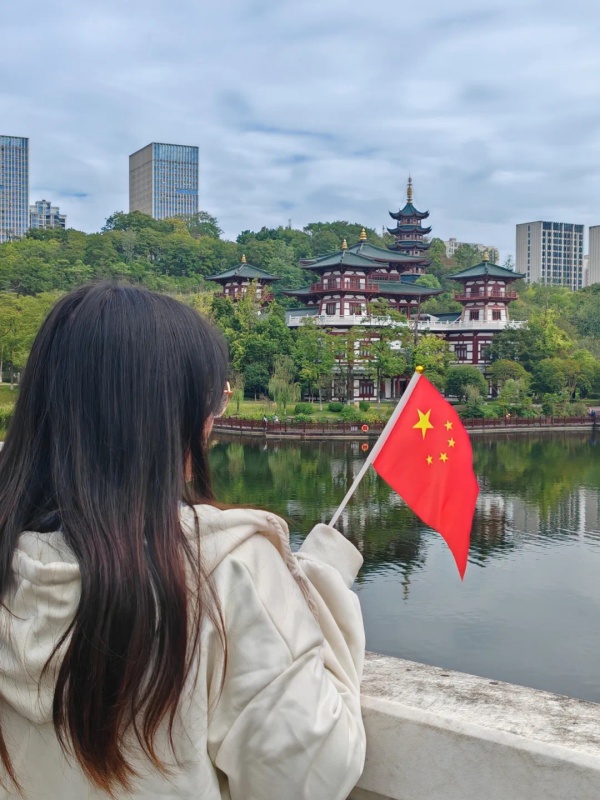 我与国旗合张影,共书爱国新篇章