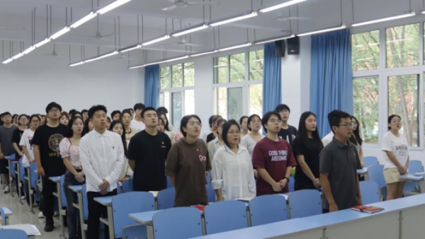 最后,支部书记刘鑫渝作总结讲话。他指出,新时代赋予青年新的使命和责任,无论是国际交流的舞台,还是身体力行的基层,都需要青年挺身而出、担当作为。他强调,全体同学应能时刻铭记党的教诲,用党员的标准要求自己,不断提升思想觉悟和道德水平,在未来的校园生活中携手并进,共同营造一个积极向上、和谐友爱的集体氛围,将理论学习的成果转化为实际行动,不仅要在学业上追求卓越,更要在品德修养、社会实践等各个方面都展现出新时代青年的风采。