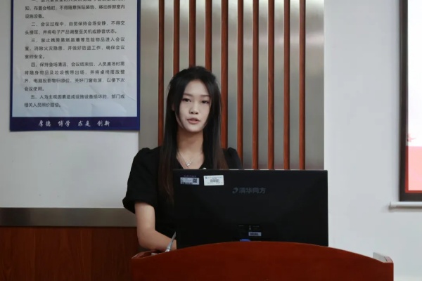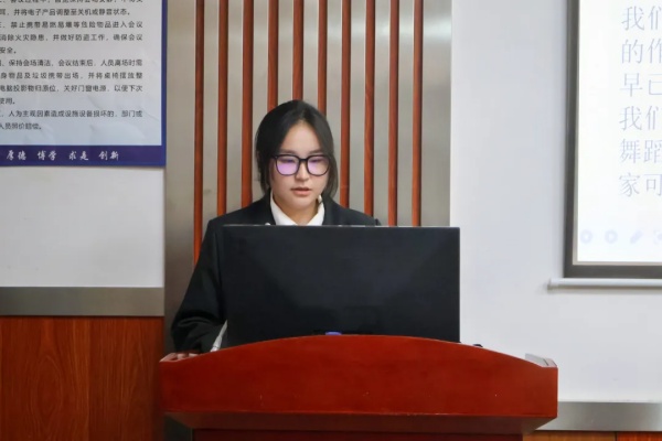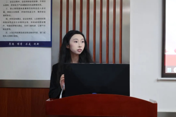 团总支副书记王彩霞同学回顾了经管团学在上个学年的工作,分享了经管团学在过去一年中所取得的成就和面临的挑战,并指出接下来需要改进的地方。此外,她介绍了团学的整体组织架构以及各部门的职能情况,并鼓励新一届骨干要勇于担当、敢于创新,在团学工作中真正做到“走得进来,带得出去”,不断提升自我和推动团学工作向更高水平迈进。