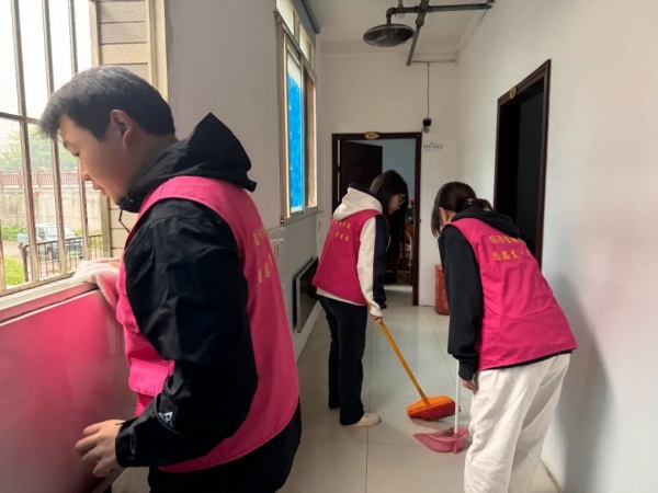 活动当天,志愿者们主动帮忙清扫院内垃圾,为老人们的生活创造干净整洁的环境。搬桌椅、擦拭门窗、清理杂物,养老院的各个角落都能看到志愿者忙碌的身影。