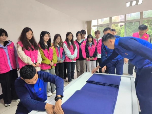 首先,消防员带领志愿者们参观了消防员宿舍。宿舍内整洁明亮、一尘不染,被子像豆腐块一样放在床头,展现出消防员们自律严谨的生活作风;随后,大家走进荣誉室参观了解大队所获得的荣誉与功勋。一张张照片、一面面锦旗无不彰显出消防队员们为守护人民安全所作出的卓越贡献。