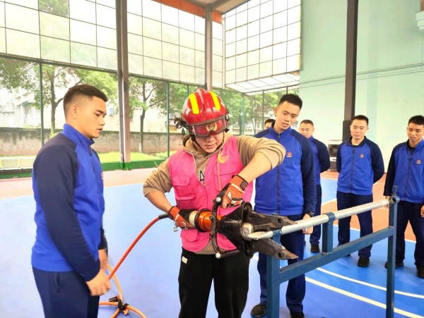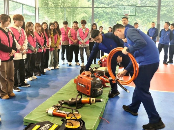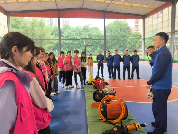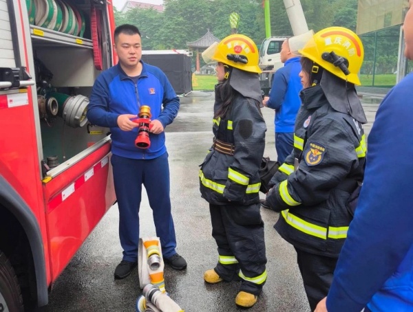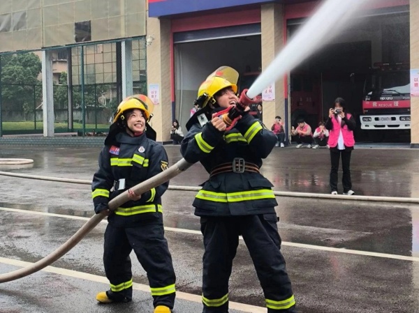 最后,消防员向同学们详细讲解了各个器材装备的技术性能和用途,并现场开展了消防业务实操训练。他向同学们演示了如何正确使用灭火器、正压式空气呼吸器等,并手把手为同学们纠正错误操作方法;与此同时,志愿者们还体验了消防员出警时的情景,这种身临其境的体验,不仅让大家感悟到了消防工作的艰辛,更增强了大家应对火灾的决策和应急反应能力。