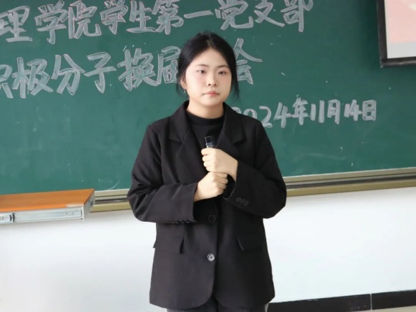 奋蹄扬鞭踏新途,乘风破浪展风采。选拔伊始,竞选者通过PPT展示和热情的演讲,从个人优势出发,围绕任职经历、职能认知、未来规划等方面依次介绍,展示出各自对党的认识和自己的竞选优势。同时,竞选者们深刻阐述了自己对所选岗位认知与工作设想,将个人成长与集体发展紧密相连,充分彰显出对所在岗位的热爱和为支部贡献的决心。