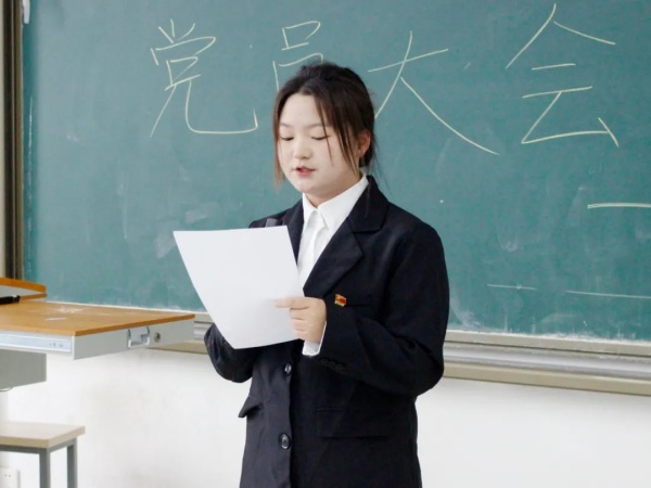 紧接着,支部书记袁小琴向全体党员发出号召。她强调,身为新时代的学生党员,应设定更为严格、更为崇高的标准来鞭策自己,严格遵守党的纪律规定,自觉在思想、行动上同党中央保持高度一致。她希望每位支部党员在未来的学习工作中不忘初心、砥砺前行,勇于担当、甘于奉献,以青春之我、奋斗之我,为党的伟大事业添砖加瓦。