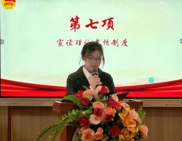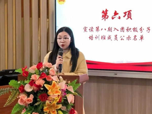 学院团学指导老师黄怡宣读第八期入团积极分子培训班成员名单,她表示共青团是广大青年成长的广阔天地、精神家园和连接时代使命的坚实桥梁;她希望各位学员要以积极的态度面对挑战,珍惜此次培训机会,不断学习和提升自我,为祖国发展贡献自己的力量。