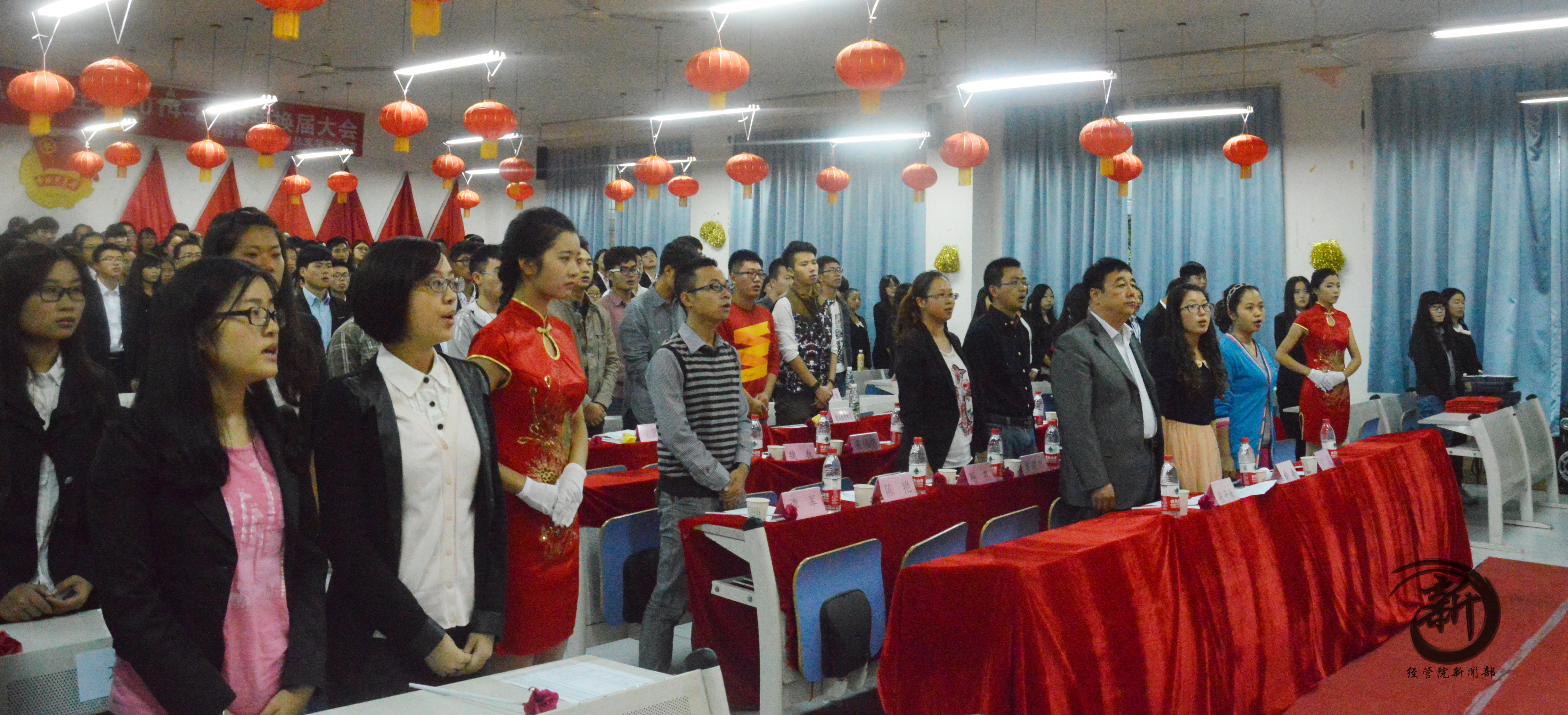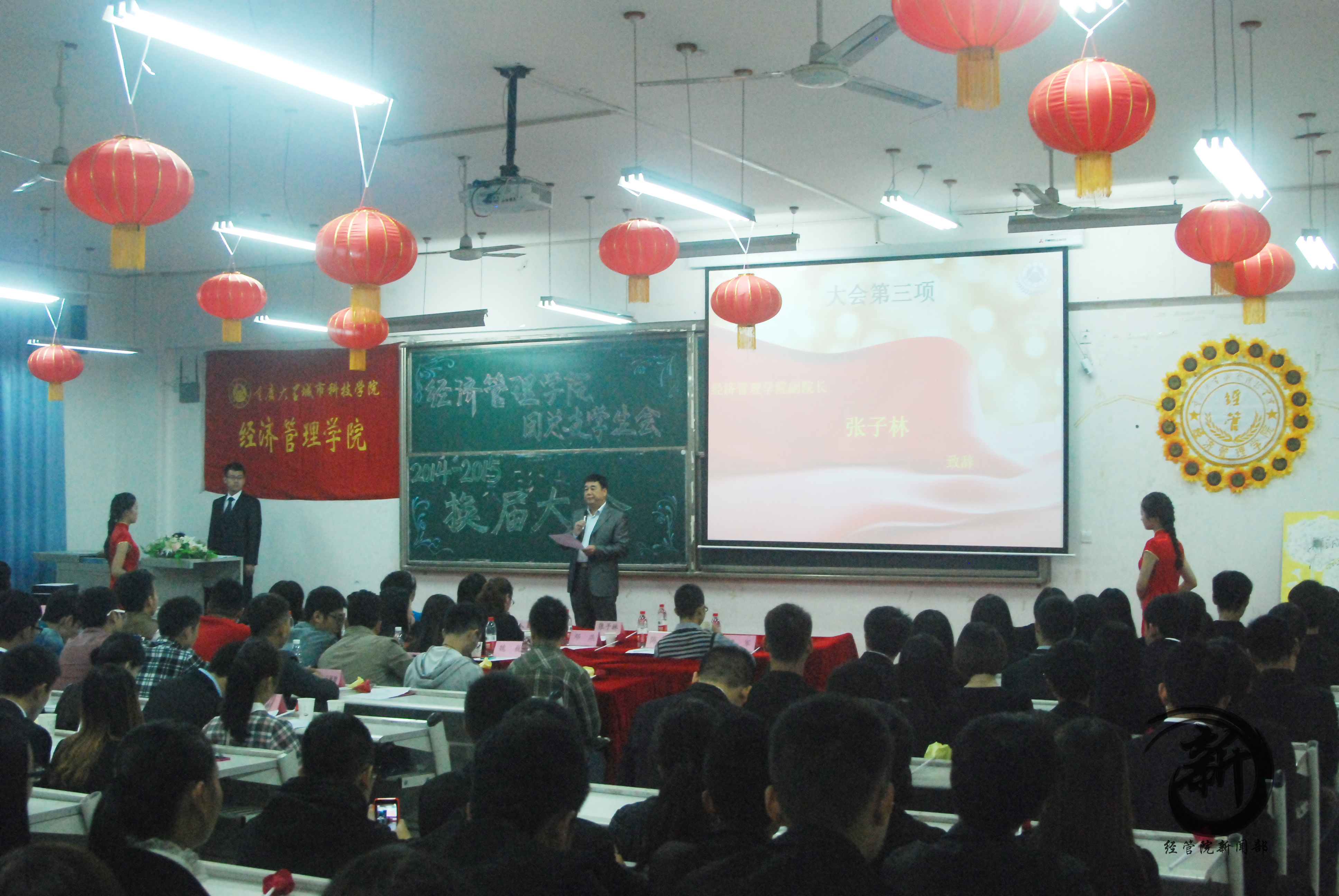2014年10月15日,经济管理学院团总支学生会在主教111召开第九届团学干部换届大会。副院长张子林、团总支书记张念老师和部分辅导员及校团委、校学生会、各二级学院学生干部代表参加本次大会。