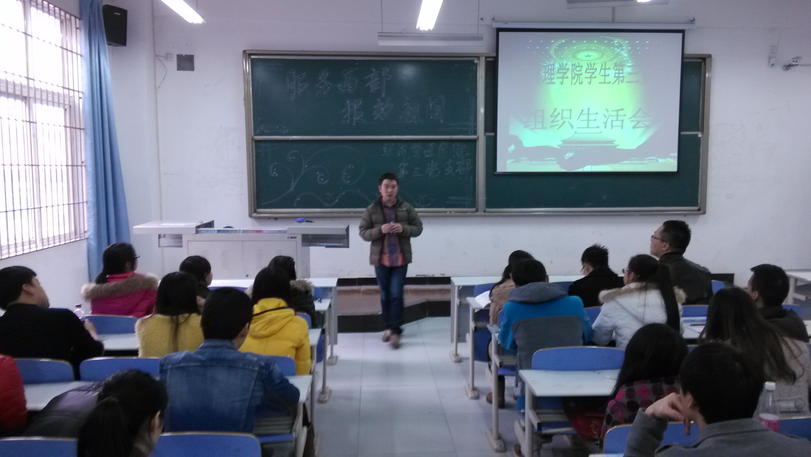 为做好2015届应届毕业生党员就业工作,使毕业生党员在就业和以后的学习、生活、工作中能够继续发扬先进性作风,更好地起到模范带头作用,经济管理学院第三学生支部于2014年12月4日中午在主教102召开了毕业生党员组织生活会.会议由经济管理学院第三学生支部副书记齐永胜老师主持,第三学生支部全体毕业生党员参加了会议。