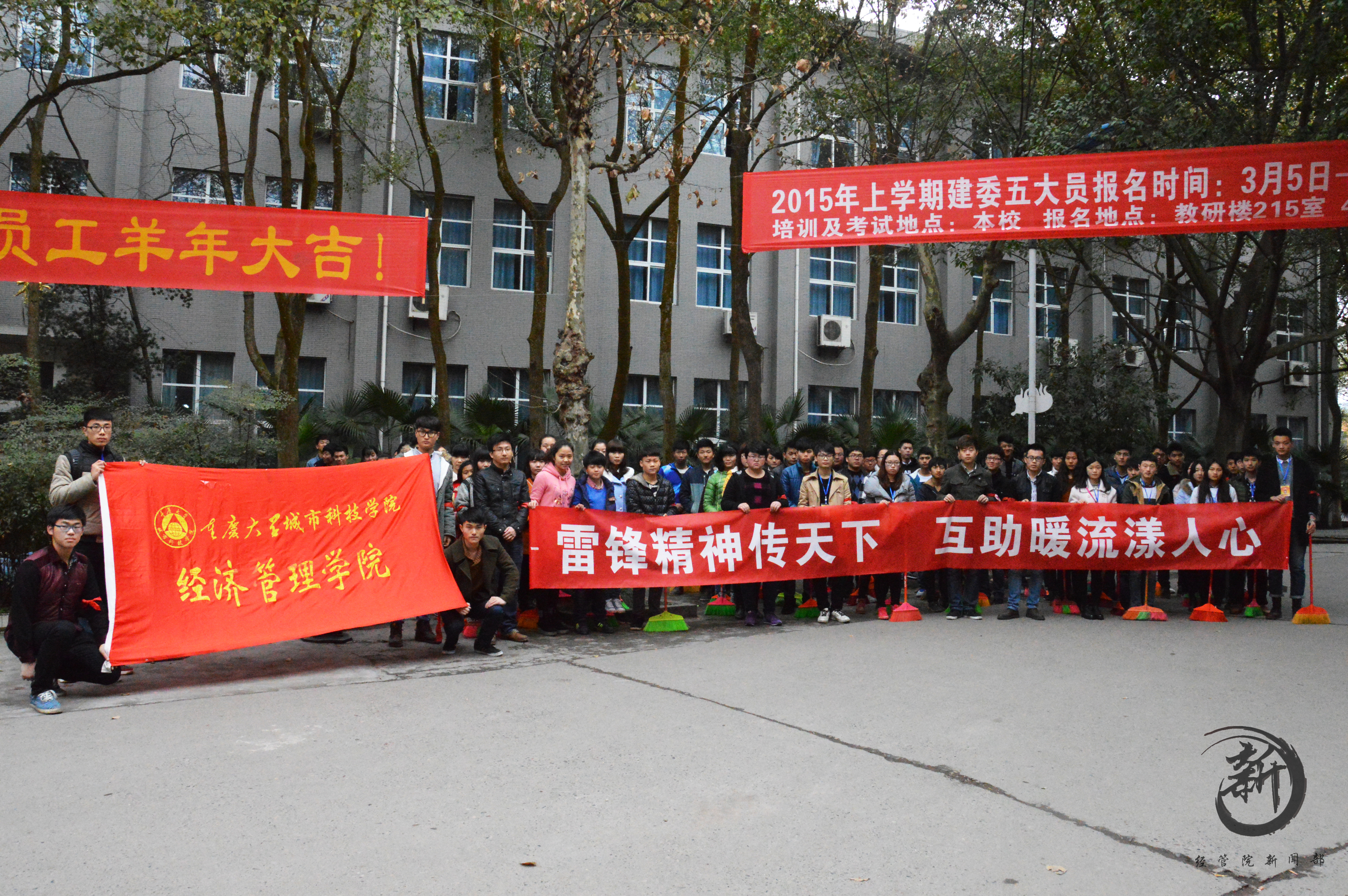 为了弘扬新时代雷锋精神,经济管理学院团总支学生会在3月5日开展学雷锋义工活动。经济管理学院各部门干部以及干事参与了本次义工活动。