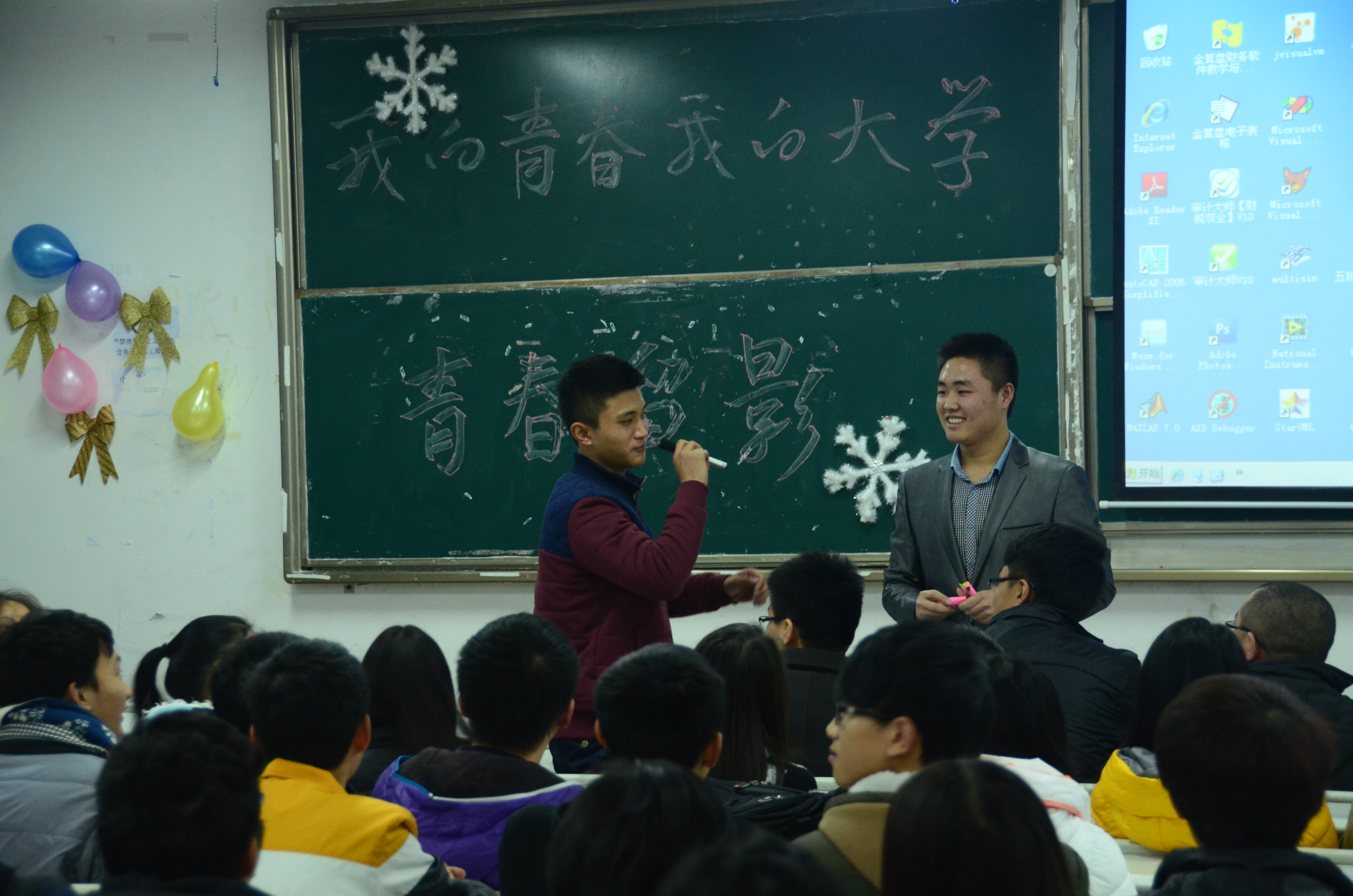 2014年12月22日,由重庆大学城市科技学院14级会计(专)和14级资产评估的同学们举办以“我的青春,我的大学”为主题的微电影特色主题班会在主教111成功落幕。出席本次活动的主要嘉宾有辅导员李晓飞老师、会计学教研室主任余小平教授以及经管院学生会主席杨帅及其学生会主要学生干部等。班会由自拍微电影赏析、有奖竞猜、嘉宾点评三个主要环节组成。在主持人幽默风趣的开场介绍后,微电影放映正式开始。