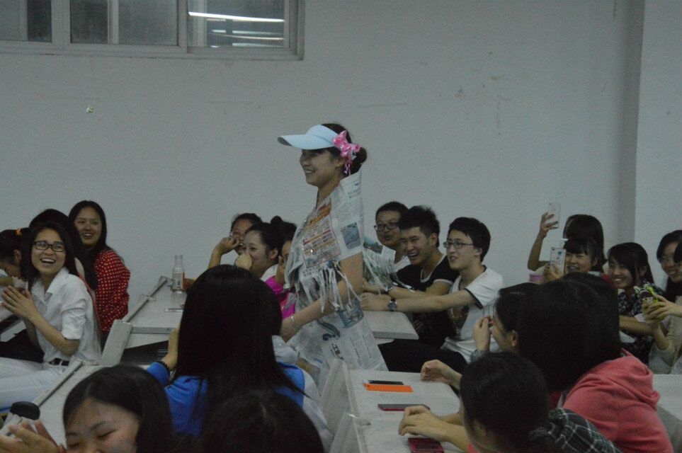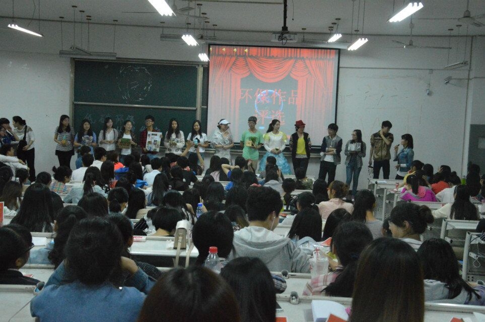 主持人吴媛与李婷婷用幽默风趣的语言为此次活动拉开序幕。接着,一段6分钟奥斯卡提名动画短片——《我们一起污染环境吧》,讲述了环境保护与垃圾分类对人类的重要性,与“低碳环保”这一主题紧紧相扣。影片结束后,同学们展示了用自己眼睛去发现的废旧材料做成的作品:一次性筷子回收做成的房子与凳子;报纸、废钢丝和塑料垃圾袋拼成的欧式礼服;矿泉水瓶、废电线、插头组装的“拉丁神灯”;鸡蛋壳做成的环保盆栽……每一件作品都是学生对环保的思考、对生态的负责。最后,此次活动在评委点评、颁奖与合照留影中愉快结束。