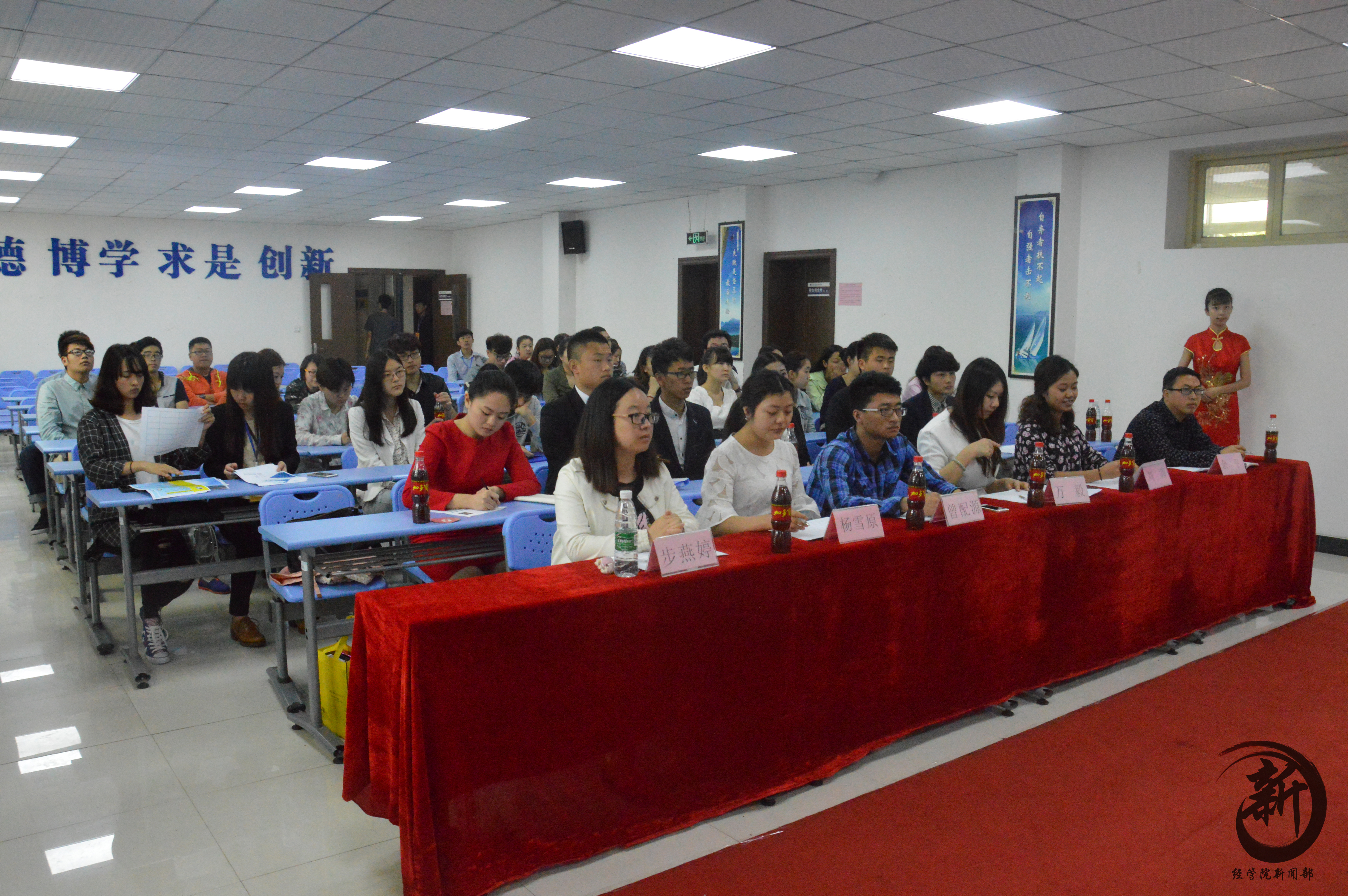 首先由刘茜书记致辞,接着进入紧张的比赛环节。本次比赛总共分为职我本色,职面人才,友话职说三个阶段。第一阶段为参赛选手的自我介绍及才艺展示阶段,第二阶段为评委与选手的互动问答阶段,本阶段切实地考察参赛选手的应变能力及其对所求岗位的认知程度,第三阶段为选手自我总结以及评委点评阶段。在比赛中,选手各显神通、彰显实力、比拼才华,充分展现自己的优势。赛事最后,由嘉宾评委对参赛选手进行点评,并提出改正意见。大赛最后,由刘茜老师公布比赛成绩:经管学院2012级会计学14班徐秋怡和2012级资产评估1班刘静同学以及来自建管学院的洪流同学分别荣获第一、二、三名。