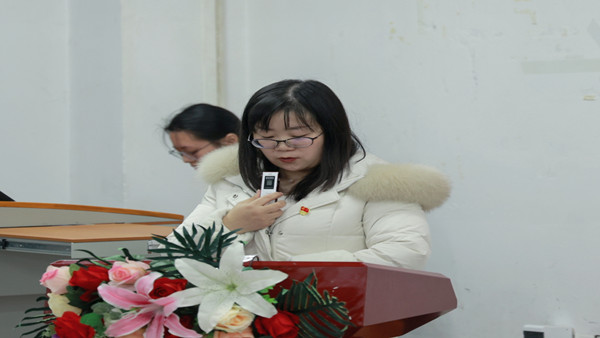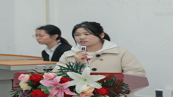 紧接着,第九期入党积极分子代表朱荟蓉同学发表讲话,她表示:作为一名积极向党组织靠拢的青年大学生,在日常学习和生活中应该以先进为榜样,用科学的思想武装自己,增强自身觉悟,为师生做实事,为学院党建工作做贡献,勤勤恳恳谋发展,脚踏实地做实事,早日成为党组织的一员。