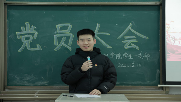 会议最后,支部书记胡威做总结讲话。他首先对如期转正的王金同志在考察期间的工作表现给予了肯定,同时表达了自己的期望,“一名党员一面旗帜”,作为一名共产党员要起到模范带头作用,时刻牢记党员身份,以身作则,以实际行动践行党员的责任与义务。希望各位党员同志奋勇担当,砥砺前行,认真对待支部工作和支部会议,严守党章党规、流程秩序,加强方针政策、伟大精神的学习并认真领悟,努力为支部建设添砖加瓦,为祖国和党的事业奉献青春力量。