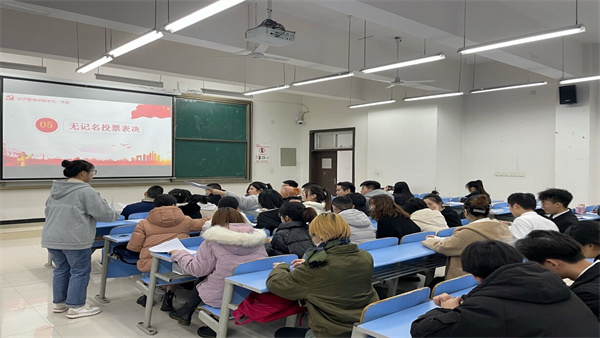 为切实做好党员发展工作,提高党员同志的思想觉悟,增强党组织的生机与活力。经济管理学院学生一支部于2021年12月16日中午在6教211召开预备党员转正大会,讨论关于王金同志的转正事宜。学生一支部书记胡威、组织委员余婕妤及全体党员参会,本次大会由胡龙同志主持。