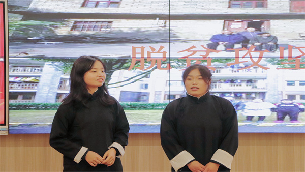脱贫攻坚队以诙谐幽默的相声,深入阐述了要做到脱真贫、真脱贫,需要在经济上和思想上“双脱贫”,以妙趣横生地表演感染观众,赢得阵阵掌声。