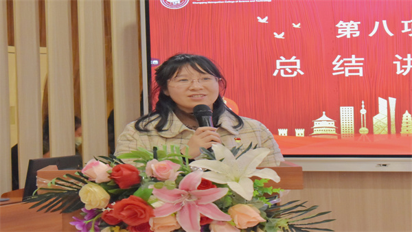 最后,由党总支纪检委员、教工第二党支部书记马碧红作总结讲话。她对完善我院党建工作提出三点建议:第一,传承红色文化、筑牢前进之魂,让红色精神往深里走、往心里走、往实里走。第二,践行历史智慧、凝聚磅礴力量,学院各党支部要进一步加强党史学习和实践活动教育的力度,积极宣传党的先进理论知识;广大党员及入党积极分子要脚踏实地,以实际行动践行初心使命,走好新的赶考之路。第三,践行履职尽责、发挥模范作用,党总支要持续、高效地推进学院党建工作,切实解决师生疑惑和困难,充分发挥基层党组织战斗堡垒作用与党员先锋模范作用。