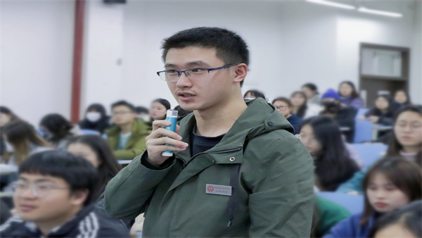 会议伊始,张宏强同学以对外开放、科技发展、土地制度改革为切入点,带领大家领略时代巨大变化的同时,对改革开放的背景和历史进行详细的讲解。张宏强同学讲到,从建国初期的自我摸索到十一届三中全会后经济特区开放,从煤油灯到万家灯火,新时代的建设者不断凝聚出“披荆斩棘的革命精神、敢为人先的创新精神”等丰富的、优秀的时代内涵。学习改革开放革故鼎新、破旧立新、不断超越的思想大潮,是青年学子们不断汲取党在新的时代条件下带领人民进行伟大革命历史进程中的精神财富,是指导学生党员与入党积极分子们创新思想、开辟更高思想境界的学习探索,是激励青年蓬勃向上的强大动力和实践基础。