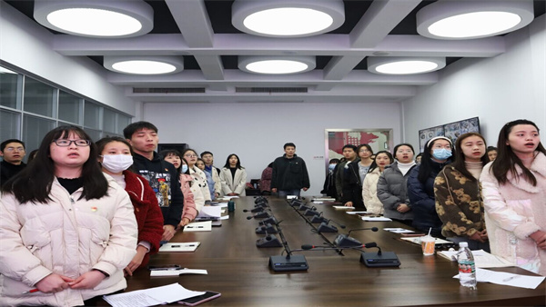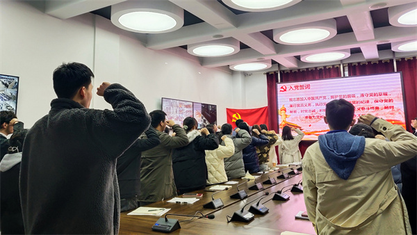为提升支部党员的党性修养,提高政治思想觉悟,端正党员思想态度,纯洁入党动机,进一步强化党员的宗旨观念和责任意识。12月21日中午,经济管理学院学生第四党支部于六教路演室举行新发展党员宣誓大会暨授徽仪式。此次大会由龙明秦同志主持,支部全体党员同志参会。