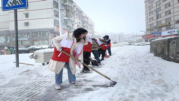 铲雪除冰暖人心,满城尽是“志愿红”。为保障市民出行便捷及车辆行驶安全,支部党员杨晓云同志参与了社区组织的铲雪除冰活动。活动中,青年志愿者们的身影在皑皑白雪中呈现出一道亮丽的风景,他们不惧严寒、分工明确、团结协助,用“志愿红”为寒日里带来一份特别的温暖。杨晓云谈到:天气的寒冷也挡不住广大青年志愿者们的热情,作为一名青年党员,就应该树立全心全意为人民服务的意识,将志愿服务做到人民的心里,在劳动中践行着奉献、友爱、团结、互助的志愿者精神,展现出青年志愿者的风采,传递青春正能量。