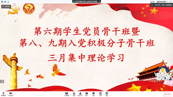 为深入学习贯彻习近平新时代中国特色社会主义思想,积极引导广大青年学生坚定理想信念,树立和践行正确的价值观,大力发扬担当和斗争精神。3月31日,经济管理学院学生党员骨干班暨入党积极分子骨干班于线上(腾讯会议)开展以“无愧使命担当,不负伟大梦想”为主题的集中理论学习。本次理论学习由何弘洪同学主持,张雅馨和汪绍鹏两名同学主讲,骨干班全体成员参加。