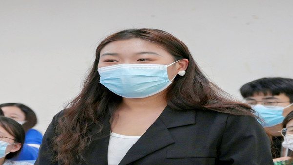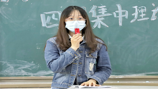 凝聚抗疫斗争的中国力量,书写抗疫必胜的高分答卷。首先,刘莉同学以视频为切入点,带领大家回顾了抗疫斗争的时间线并从四方面阐述抗疫“制胜密码”。她谈到,当疫情风暴来袭时,党中央始终坚持人民至上、生命至上,千万名医务工作者挺身而出,同时间赛跑,与病魔较量,和全国人民一起风雨同舟地构筑起一道坚固的疫情防控线,为全球抗疫工作贡献了中国智慧和中国力量。