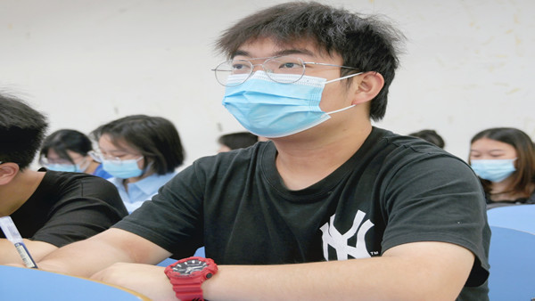 学深悟透抗疫精神,砥砺奋进青年担当。随后,刘恋坪同学围绕“生命至上”、“举国同心”、“舍生忘死”、“尊重科学”、“命运与共”等五个词诠释了伟大抗疫精神,带领大家深入领会中国精神。她讲到,我们应在抗疫精神的淬炼中砥砺前行,充分汲取伟大抗疫精神的深刻内涵和精神实质。紧接着,她从疫情防控常态化的“常”、“细”、“实”等三个方面向我们阐述了,在疫情防控常态化面前,我们应该如何做。作为青年大学生,既要做好自我防控,同时也要坚定信心,积极参与疫情防控志愿工作,为疫情防控贡献青春力量。