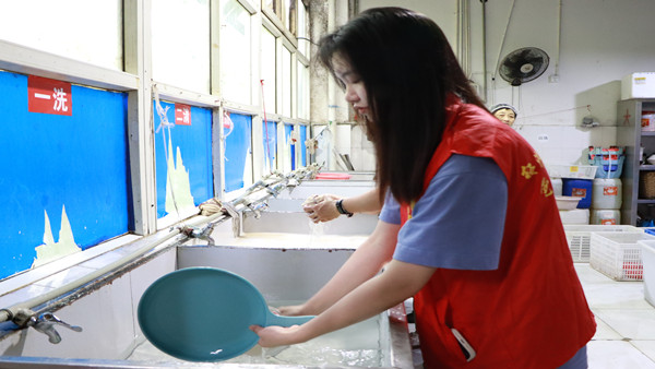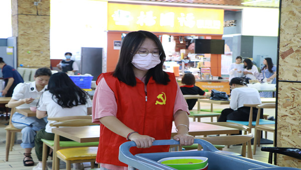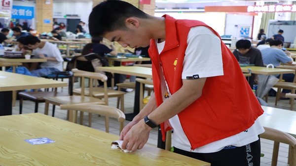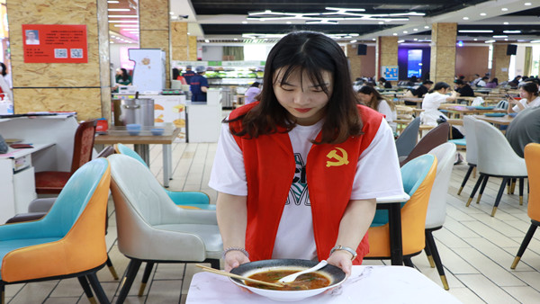 奋楫前行,服务温暖人心。从清理饭桌、运送餐盘到帮助食堂阿姨们洗碗拖地,志愿者们身体力行,率先垂范,以实际行动助力志愿服务;为全校师生营造了一个干净、整洁的文明用餐环境,他们用实践和奉献提供暖心服务,展现青春作为,进一步凸显了青年学子应有的蓬勃朝气和青春魄力。