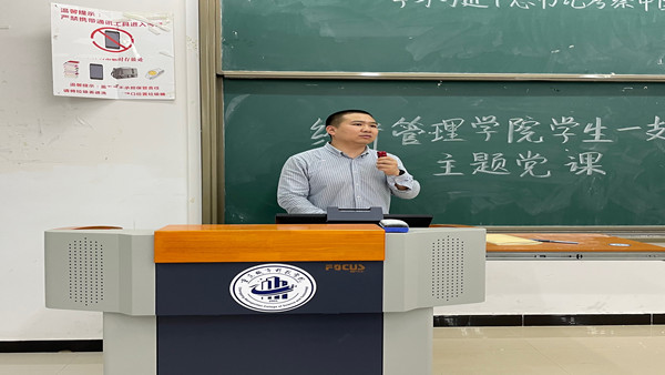 为深入学习贯彻习近平总书记系列讲话精神,让支部党员在思想上政治上行动上同党中央保持高度一致,5月27日中午,经济管理学院学生一支部于六教405展开支部书记讲党课活动,共同学习“习近平总书记在中国人民大学考察时的重要讲话精神”,此次党课由支部书记胡威主讲,支部全体党员参与本次活动,拟发展对象列席。