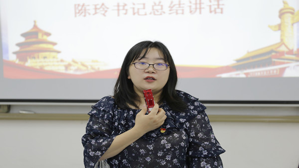 最后,陈玲书记就此次党日活动作总结讲话,首先,她对此次主题党日活动新颖的活动形式以及支部党员和入党积极分子的参与度给予高度评价。同时指出,一个党员就是一面旗帜,一个支部就是一座堡垒。支部党员同志要努力发挥党员的先锋模范作用,自觉把个人理想融入国家发展伟业,胸怀祖国、艰苦奋斗、开拓创新、无私奉献,在祖国和人民最需要的地方建功立业,勇做新时代的奋斗者,为实现“两个一百年”奋斗目标、实现中华民族伟大复兴的中国梦贡献智慧和力量。