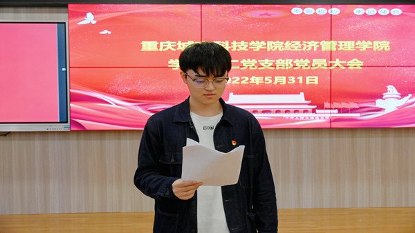为进一步加强党员队伍建设,认真践行新时代党的建设工作总要求,紧密结合时代要求,扎实做好党员发展和党员管理工作。5月31日中午,经济管理学院学生第二党支部以“线上+线下”相结合方式,于经管学院大楼金融仿真中心召开支部党员大会。会议主要讨论关于李娜、黄兰等11名预备党员如期转正事宜。支部书记陈玲及经济管理学院学生第二党支部全体党员参会,本次会议由支部组织委员罗明波同志主持。
