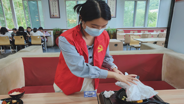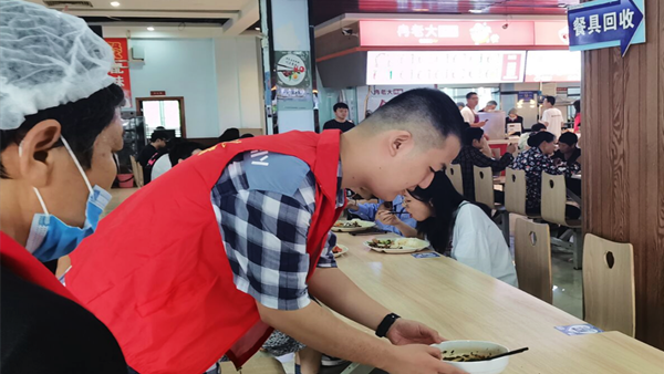 志愿者们戴好口罩,身着红马甲,出现在食堂的各个角落,帮助食堂阿姨收拾餐桌,分拣剩菜剩饭,他们各司其职、相互配合,为构建干净卫生的校园用餐环境,纷纷贡献出了自己的力量。行动是花,成功是果,志愿者们通过行动,将“文明食堂”的主题诠释得淋漓尽致。
