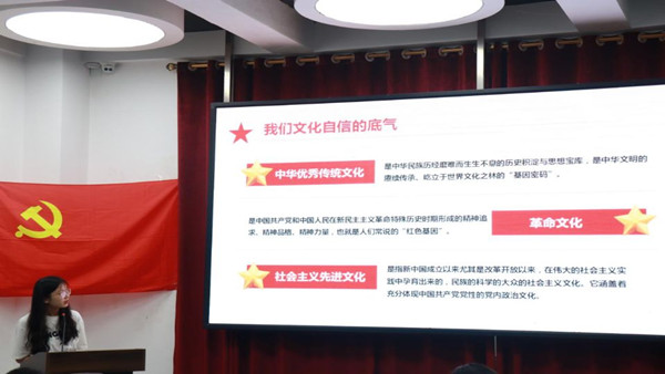 知人者智,自知者明。唐红同志以“文化自信”为主题,通过河南卫视的中国文化系列活动的介绍,让大家深刻理解到文化自信的重要性。她谈到,文化是国家和民族的灵魂,文化兴国运兴,文化强民族强,没有高度的文化自信,没有文化的繁荣兴盛,就没有中华民族伟大复兴的精神。存乎志,良于行,在新征程上,我们要坚定文化自信,始终挺立时代潮头,不断增强做中国人的志气、骨气、底气,以强烈的历史主动精神,积极投身社会主义文化强国建设。
