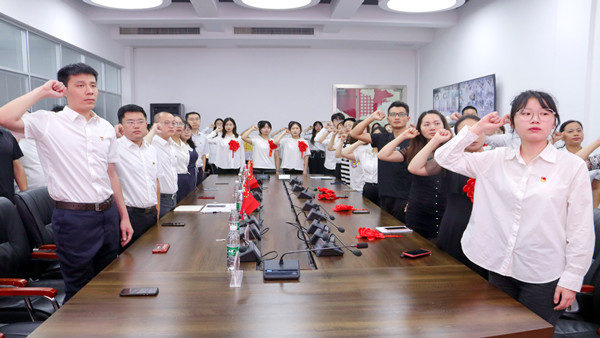 初心明若镜,使命固如磐。在党总支青年委员苏丽娟同志的带领下,全体党员共同举起右手握紧拳头,面向红色党旗,怀揣炽热之心,重温入党誓词。铮铮誓言,字字铿锵,句句深意,让党员同志们的初心再回顾、思想再洗礼、心灵再净化,他们纷纷表示会以实际行动践行对党的庄严承诺,以赤诚忠心为人民服务,努力做时代命题合格的“答卷人”。