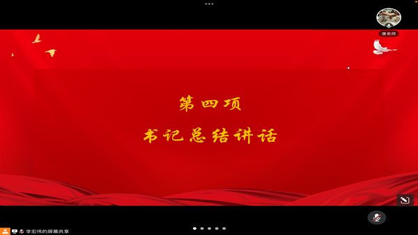 学思践悟坚定理想信念,奋发有为践行初心使命。最后,支部书记唐继龙总结讲到,首先认真学习党章、党史是每一位党员的入门课、必修课、终身课,要切实抓好学习领会并贯彻落实,在学深悟透中补足精神之钙、砥砺初心使命、展现担当作为。其次,作为新时代的党员更应该用榜样的先进事迹时刻激励自己,向优秀致敬与榜样同行。最后,要自觉做到在党爱党、在党言党、在党为党,纪律上要约束,品德上要过硬,工作上要担当。