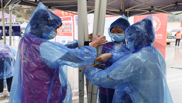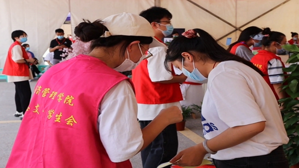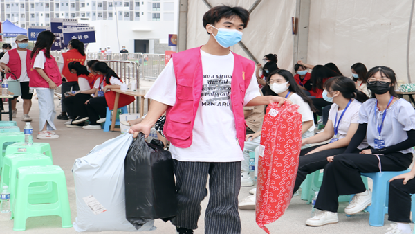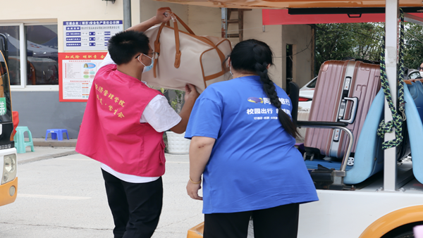 无论炎热天气还是风吹雨淋,迎新志愿者们始终带着热情的笑脸,亲切的问候,身穿红色马甲,在接车处、行李寄存处、核酸检测点、帐篷等新生报到必经之处迎热情陪伴,耐心细致地为新生同学提供搬运行李、引导、登记、咨询等服务。每个环节都一丝不苟,有条不紊,只为新生更好感受经济管理学院大家庭的温暖。