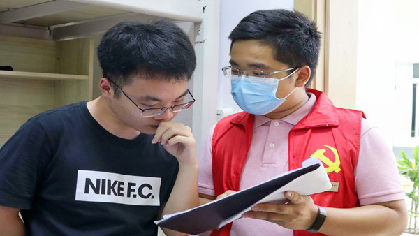 战“疫”有我,“青”力相助。从一楼到十一楼,志愿者们始终耐心地解答同学们的疑问,微笑面对每一位同学,细心对待疫情防控数据摸查工作,不曾有丝毫的懈怠和抱怨。他们将初心落实于行动,把使命赋予给岗位,用实际行动诠释“奉献、友爱、互助、进步”的志愿服务精神,用责任和担当织牢织密校园疫情防控网,用热情吹响新学期、新征程的号角,为健康校园筑起一道免疫屏障。
