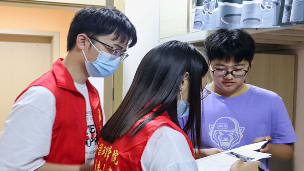 细摸抓排,“疫”同护航。校领导对学生宿舍静态管理期间的人员值班和防疫物资储备等工作进行实地视察,志愿者们也深入宿舍楼开展疫情防控数据排查工作,详细地对返校学生的渝康码、行程码、核酸检测记录等基本信息进行核查,并认真宣传学校的防疫政策。同时,为确保疫情静态管理的有效性,志愿者们不断提醒市内外返渝人员及时进行三天两检或七天五检,积极引导学生配合学校相关防疫工作,科学理性的对待疫情。