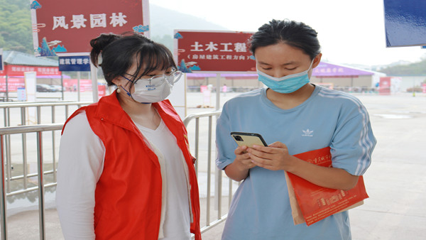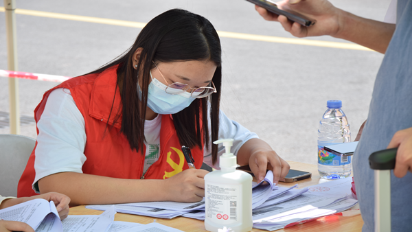 恪守岗位,勇于担当。志愿者们佩戴口罩,身着红色小马甲,在现场积极进行秩序维护、采样指引、协助信息登记等工作。从三码检测到行程核实,从一人一米间距到指引老生二次核酸,志愿者们秩序井然地开展每一项工作。他们始终坚守在自己的岗位上,为返校的同学热心解答疑难、耐心做好引领,严格把握好校园防疫的安全关、关键关,有力地保障了返校工作的有序进行。