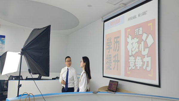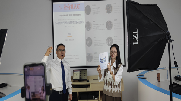 2022年9月23日9点,经济管理学院一支部书记胡威老师和经济管理学院辅导员况心玲老师在六教213实训室通过抖音号“经今有V”进行线上直播,同2022届新生同学分享有关国际教育的相关内容。
