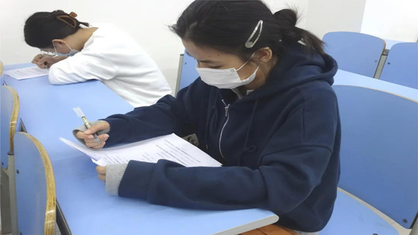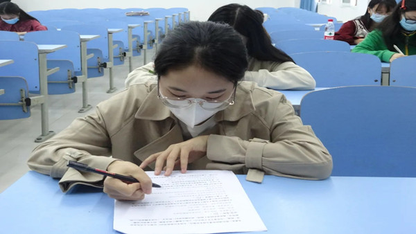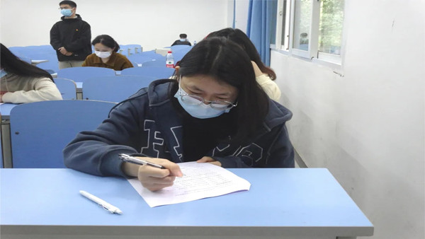 牢记初心使命,凝聚奋进力量。为积极响应校园疫情防控工作要求,考试开始前,现场人员均佩戴好口罩,考务人员对入场人员做好相应记录,考试人员有序入场。同时为保障理论考试的有效性与公正性,各位拟发展依次间隔而坐,支部委员进行全程监督确保考试结果。本次理论考试采取闭卷答题形式,由单选题、多选题、填空题、名词解释、论述题等题型组成,考试内容紧扣党史、新中国史、学习强国中“专项答题”系列等方面知识,旨在全面考察拟发展对象对党的基本知识掌握程度,进一步锤炼拟发展对象的党性修养,提高政治素养,强化理论武装。