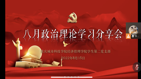 为深入学习贯彻习近平新时代中国特色社会主义思想,学习共产党人的精神谱系,大力弘扬红色革命精神,不忘初心,牢记使命。8月15日中午,经济管理学院学生第二党支部于线上(腾讯会议)开展八月政治理论学习分享会。支部书记陈玲及支部全体党员参加,会议由李思琪同志主持。