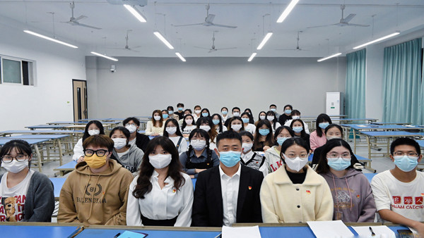 首先,由辅导员胡容老师作开场发言。她谈到,团支书作为团支部与党支部间的联络员,要始终以党员的标准严格要求自己,认真履行好职责,做好上传下达的对接工作,更应该发挥自身的“桥梁”作用,提升反馈信息的能力,带动整个班集体奋发向上,积极向党组织靠拢。