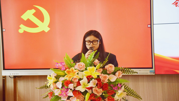 随后,预备党员代表唐媛同志上台发言,她表示:此次入党宣誓仪式更加坚定了理想信念,明确了自身职责和使命,今后会自觉向身边的优秀党员学习,以更加饱满的热情投身各项工作,不断加强对党的基本理论和党的知识的学习,不断加强党性修养,为支部建设发展做出新的贡献,为党的事业献出自己的青春和热血。