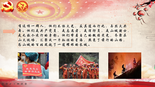 为深入学习贯彻习近平新时代中国特色社会主义思想,提高入党积极分子的思想觉悟和责任意识,领悟价值追求,强化使命担当。9月23日中午,经济管理学院学生党员骨干班暨入党积极分子骨干班于线上(腾讯会议)开展以“凝聚八方力量,齐行迎战山火”为主题的集中理论学习。本次理论学习由幸弋倪和向柳阳同学主讲,经济管理学院骨干班全体成员参会。