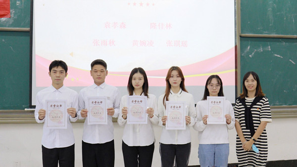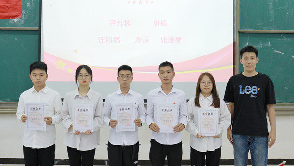 龚宇梦、张峻铭两位老师为第八期入党积极分子骨干班中获得“优秀学员”的同学颁发优秀学员证书。