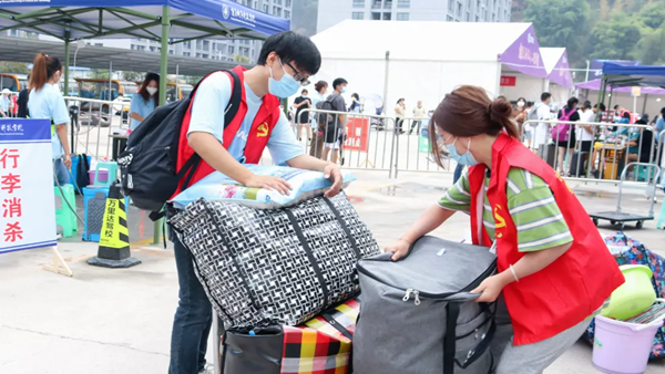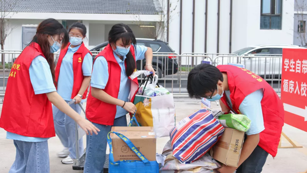 离别嘱托,相送守候。2022级新生家长们对学校疫情防控的要求和措施表示理解和支持,他们大多在学校隔栏旁驻足观望,反复叮嘱生活中的点点滴滴。家长们看到学校用心周到的安排、老师和志愿者贴心细致的服务和充满浓郁热情的迎新氛围,纷纷挥手告别,寄予殷切期望,希望他们都能拾起梦想行囊,向梦而行。