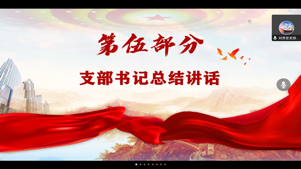 青年生逢其时,蓝图昭示未来。活动最后支部书记刘芳宏同志做总结讲话。她谈到,我们作为新时代的实践者和亲历者,要自觉履行起自立自强的使命担当,学习贯彻好党的二十大精神,不断立足新发展阶段,为实现中华民族伟大复兴的中国梦贡献属于自己的青春力量,切实做到虔诚而执着、至信而深厚,将青春遍布在为祖国建设发展的大江浪潮中,将信仰投入到祖国未来的华丽篇章里,让理想的明灯在心中发光,在前路闪耀。