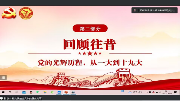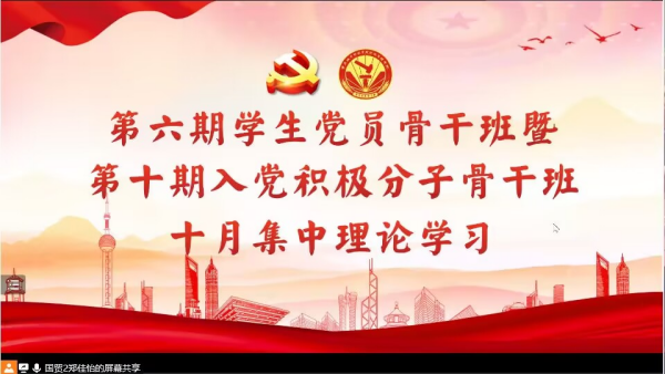 为深入学习贯彻习近平新时代中国特色社会主义思想,领会党的二十大精神,积极引导入党积极分子提高政治思想觉悟,坚定不移听党话、跟党走,用青春谱写奋斗华章。10月28日中午,经济管理学院学生党员骨干班暨入党积极分子骨干班于线上(腾讯会议)开展以“青春心向党,奋进新时代”为主题的集中理论学习。本次理论学习由郑佳怡同学主持,翁贝尔同学主讲,经济管理学院骨干班全体成员参会。