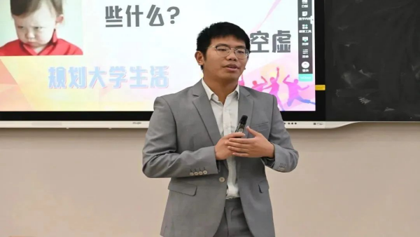 紧接着,李宏伟同志以“胸有宏伟志,无高不可攀”为主题向新生同学展开大学成长分享。首先和学弟学妹亲切交流,了解现面临的主要困惑,大家踊跃发言。他从空虚、迷茫、自卑、怀旧、焦虑等方面进行耐心详细的解答,与同学们交流经验。随后,他讲述了关于自己的大学生活与成长经历。在大学期间多次参加“学创杯”全国大学生创业综合模拟大赛并取得二等奖,同时积极参加各类学科竞赛,荣获奖项四十余项。结合自己的成长经历,希望学弟学妹们能够学会管理自己的时间,主动学习相关技能,明确自己的大学目标并为之努力奋斗。