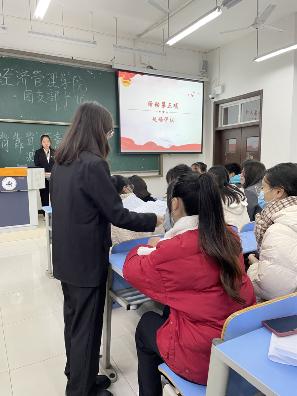 为进一步加强团组织建设,切实建立起“团支部书记满不满意,团员说了算”评价机制。2022年12月5日12:30,经济管理学院团总支组织部于经济管理学院大楼401组织开展2022年团支部书记“背靠背”满意度测评示范活动,经济管理学院团总支组织部骨干和各2022级新生团支部书记参加此次示范活动。
